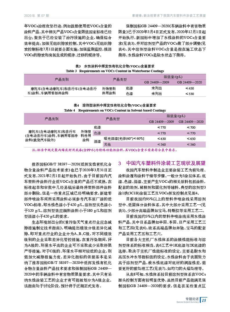 新法規要求下我國汽車塑料件涂裝工藝展望