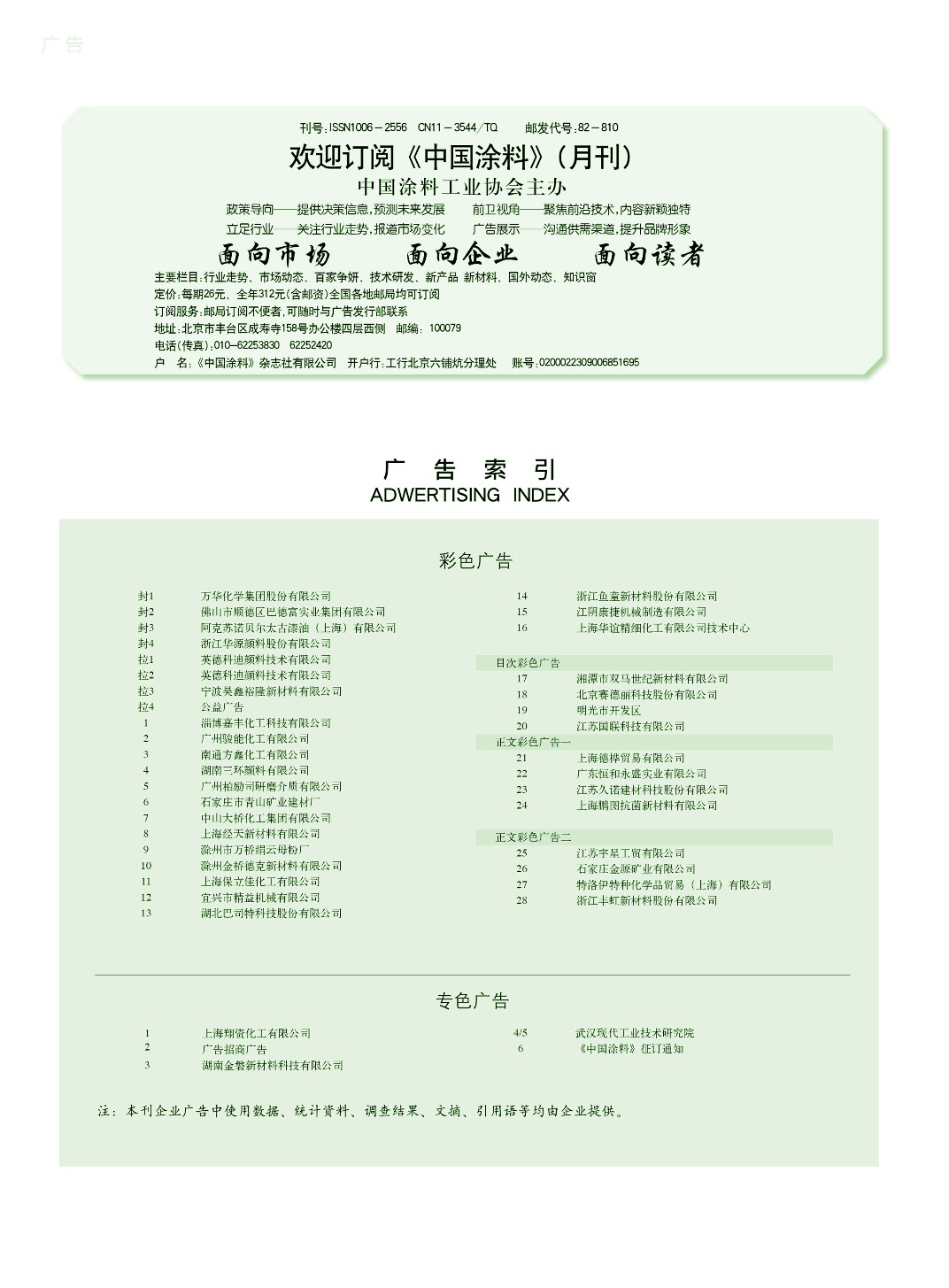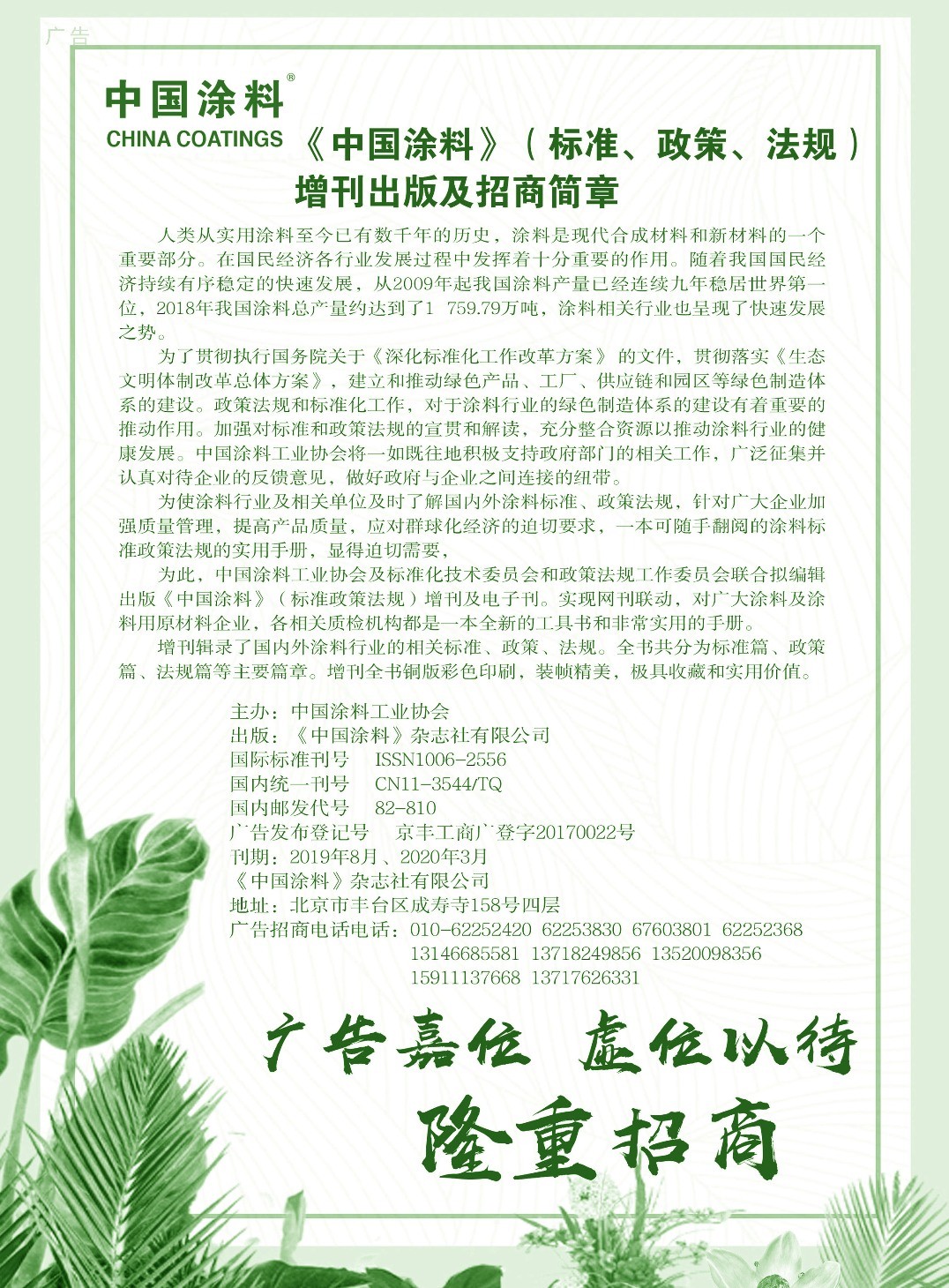 上海翔資、廣告招商、湖南金磐、武漢現(xiàn)代工業(yè)技術(shù)研究院、《中國涂料》征訂通知