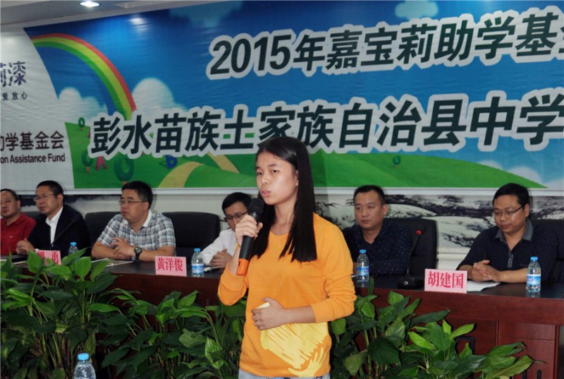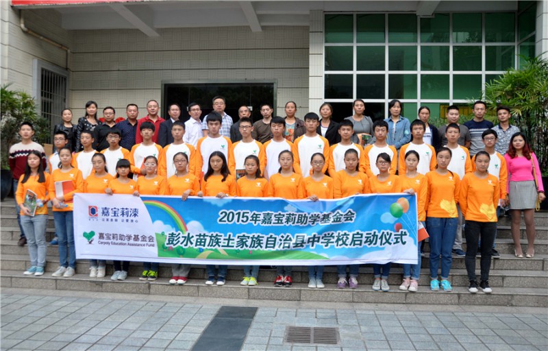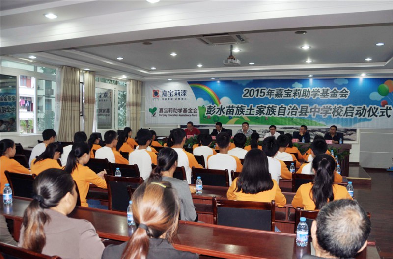 10月21日,2015年嘉寶莉助學(xué)啟動儀式在彭水中學(xué)多功能廳舉行,30名來自烏江下游兩岸的苗族、土家族高一優(yōu)秀貧困學(xué)子喜獲資助。高中三年,他們將獲得嘉寶莉助學(xué)基金會每人每年2000元的資助。