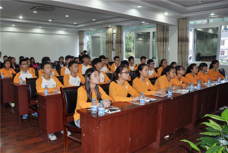 活動現(xiàn)場受助學(xué)生認(rèn)真觀看助學(xué)視頻