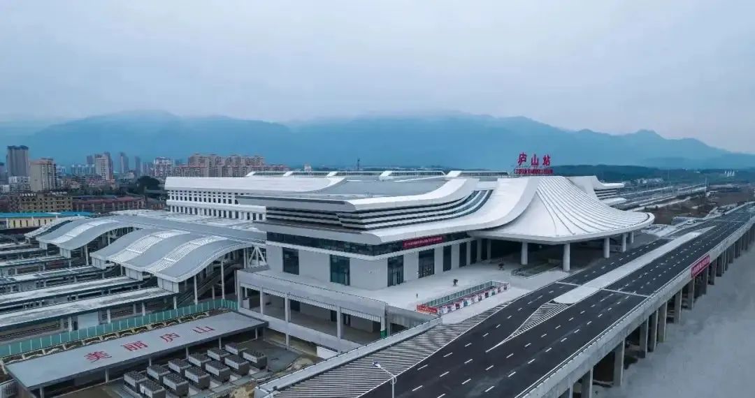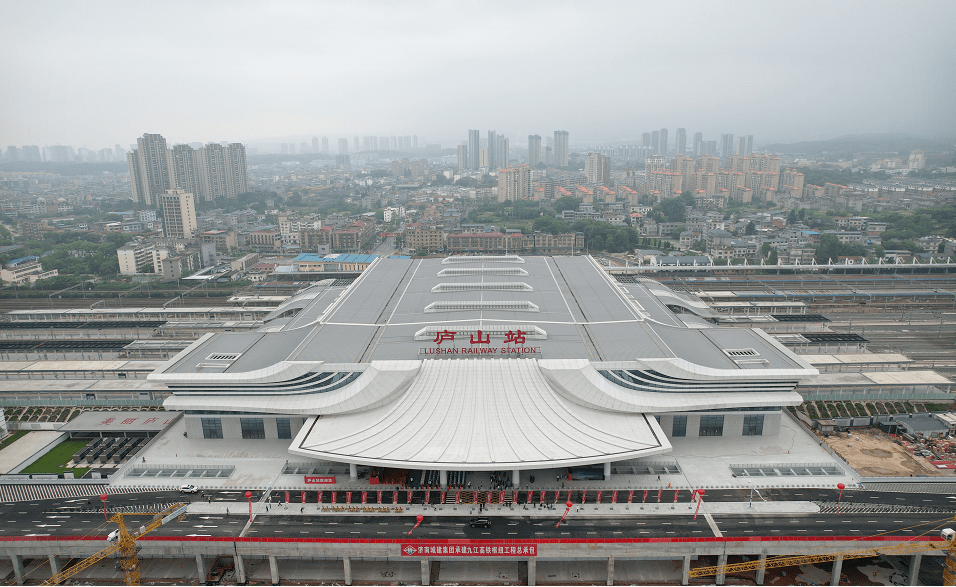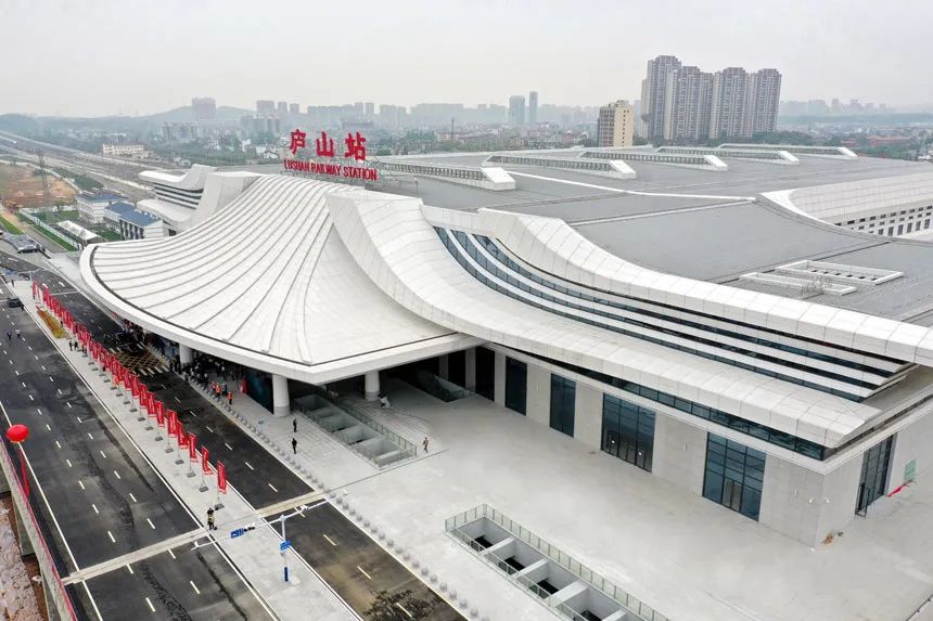 2022年4月底,九江市首座高鐵站——廬山站西站房正式開通運(yùn)營。站臺設(shè)計(jì)融入廬山云霧和山水的柔美形態(tài),色彩明快,意境唯美,與遠(yuǎn)處的自然景觀遙相呼應(yīng),于山影水語間大放異彩!