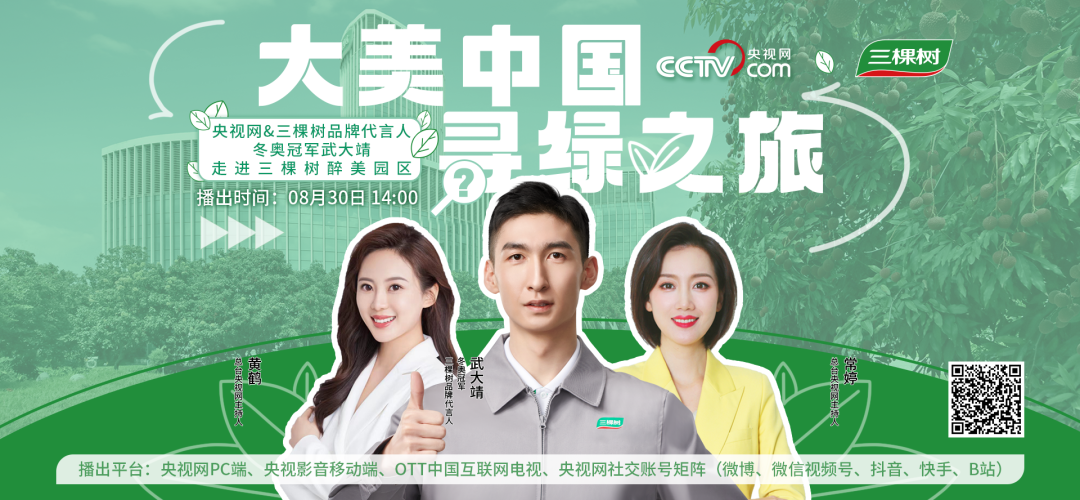 八月的暑熱還在繼續(xù),是時候享受一場徹底的綠意啦~三棵樹品牌代言人、冬奧冠軍武大靖,央視網(wǎng)主持人常婷、黃鶴現(xiàn)身三棵樹,在8月30日14:00開啟一場尋綠之旅,在三棵樹醉美園區(qū)中,探尋綠色涂料的奧秘。