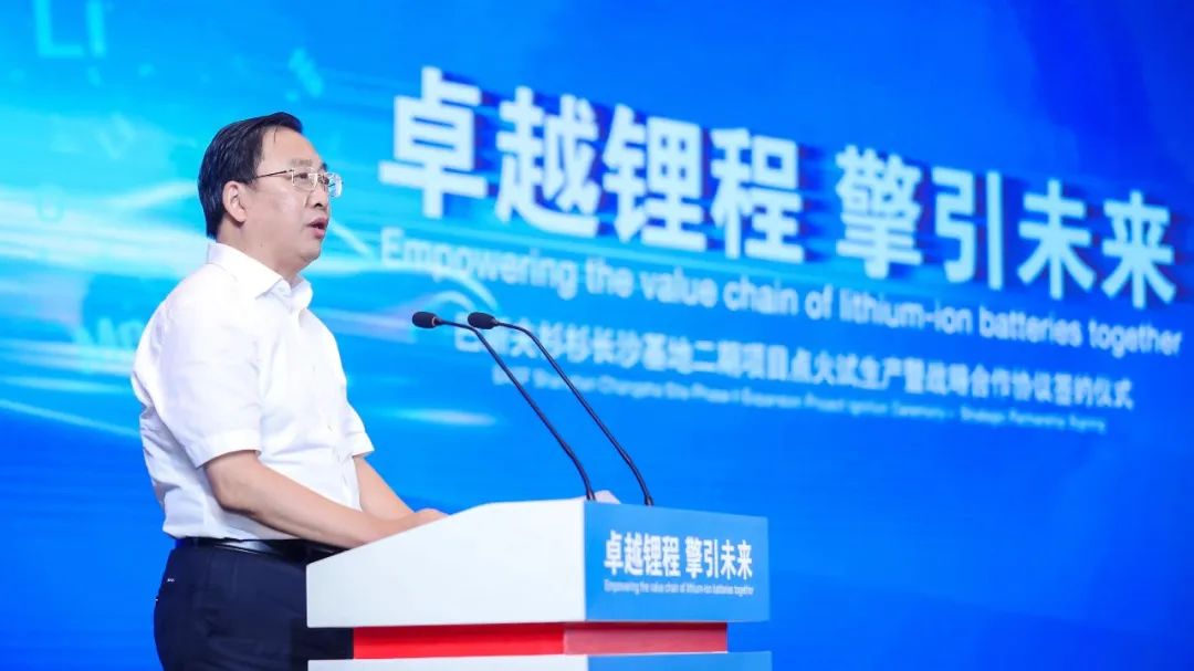 湖南省委常委、長沙市委書記吳桂英,長沙市委副書記、湖南湘江新區(qū)黨工委書記、岳麓區(qū)委書記譚勇等政府領(lǐng)導(dǎo),巴斯夫大中華區(qū)董事長兼總裁樓劍鋒博士,寧波杉杉股份有限公司董事兼湖南永杉鋰業(yè)有限公司董事長楊峰,巴斯夫電池材料全球高級副總裁兼巴斯夫杉杉電池材料有限公司董事長貝銘凱博士(Dr. Michael Baier),巴斯夫全球高級副總裁鄭大慶博士,真鋰研究創(chuàng)始人、總裁墨柯及國內(nèi)外行業(yè)各方代表,以及巴斯夫杉杉CEO楊捷、常務(wù)副總經(jīng)理暨COO暨CTO彭文杰等公司代表出席儀式并共同見證。
