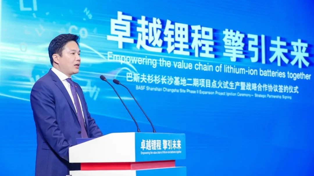 譚勇在點火試生產(chǎn)啟動上發(fā)表講話。他表示,巴斯夫杉杉作為正極材料行業(yè)的標桿企業(yè),為湖南打造先進儲能材料產(chǎn)業(yè)集群高地、高質(zhì)量譜寫低碳可持續(xù)發(fā)展新篇章提供了強力支撐。期待企業(yè)繼續(xù)加強政企協(xié)作,加快規(guī)模化建設(shè),穩(wěn)步提升產(chǎn)能,為社會高質(zhì)量發(fā)展作出更大貢獻。