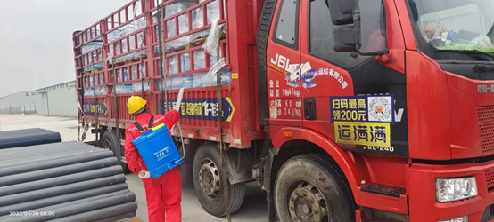 ◆3月15日,集泰水性漆第一輛貨運專車到達現場
