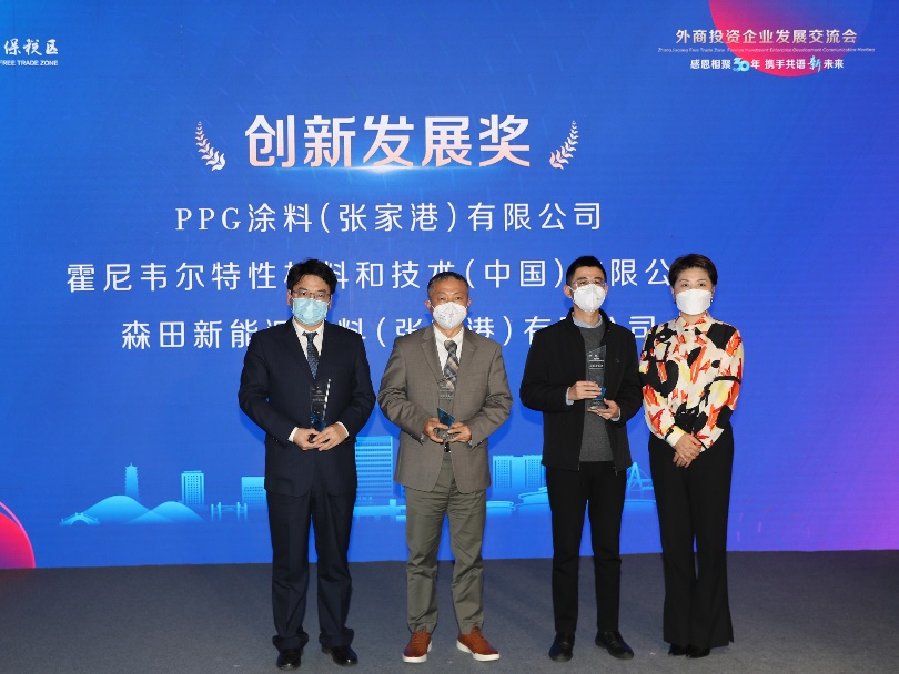 近日,PPG涂料(張家港)有限公司榮獲由張家港及張家港保稅區政府頒發的“創新發展獎”。