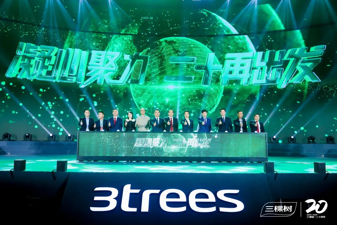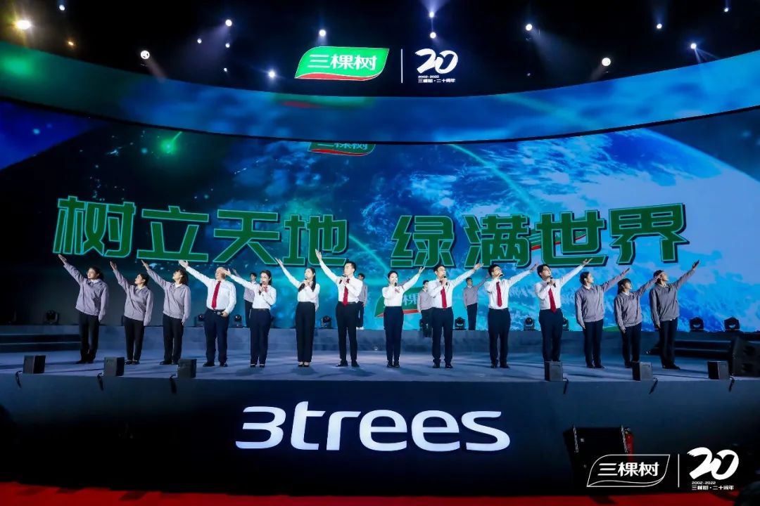 三棵樹品牌代言人武大靖、谷愛凌、中國國家短道速滑隊(duì)通過視頻表達(dá)對三棵樹成立20周年的美好祝福。在全體三棵樹人和合作伙伴嘉賓的見證下,三棵樹“凝心聚力 二十再出發(fā)”正式啟動。隨后,舉辦了20周年慶典晚會。