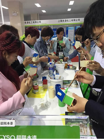 展覽會上,晨陽水漆展臺重點展示了旗下的工業水漆、內外墻水漆、多功能水漆等系列產品。為讓參觀者更好地了解環保水漆特性和應用,公司展位精心設計了海報、宣傳單頁;同時,還開辟了試刷體驗區,親身體驗晨陽水漆的環保特性,吸引了眾多觀眾駐足。