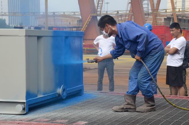 目前,晨陽水漆已和渤海裝備技術(shù)對接完畢,進行到試驗階段。實驗首先從任丘的鉆井設(shè)備廠開始,經(jīng)過親身體驗試驗過程,確定水漆安全環(huán)保,顏色艷麗,附著力、硬度等指標完全符合客戶需求,現(xiàn)場得到了石油系統(tǒng)及地方環(huán)保部門的高度認可。