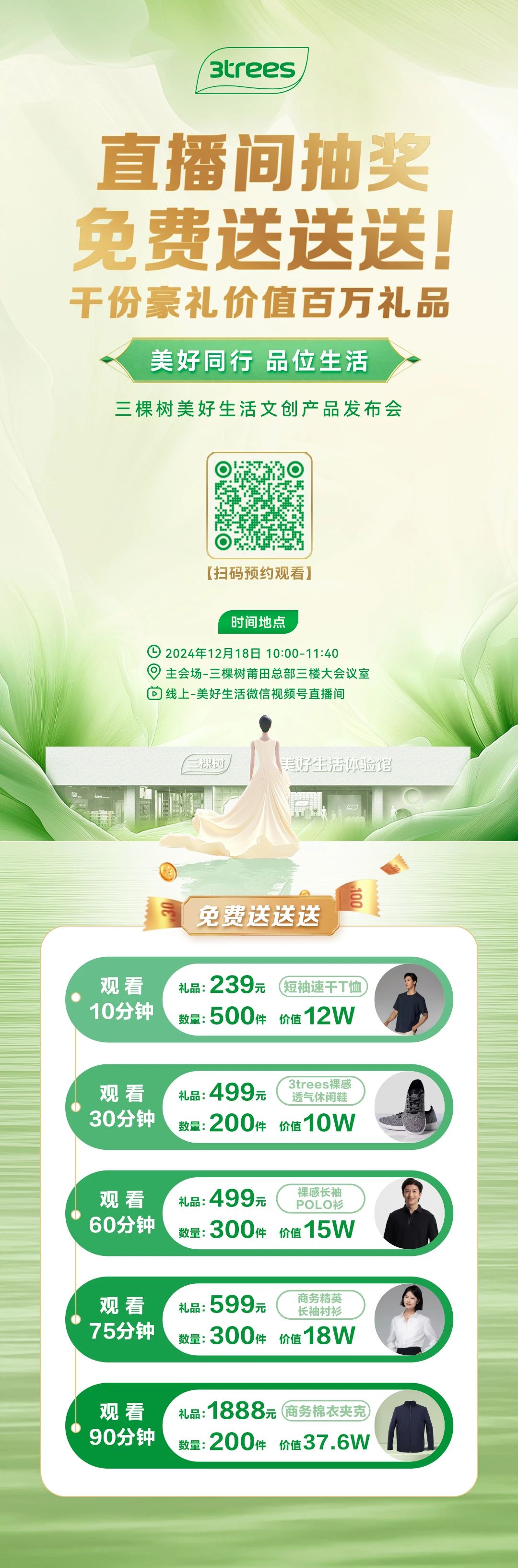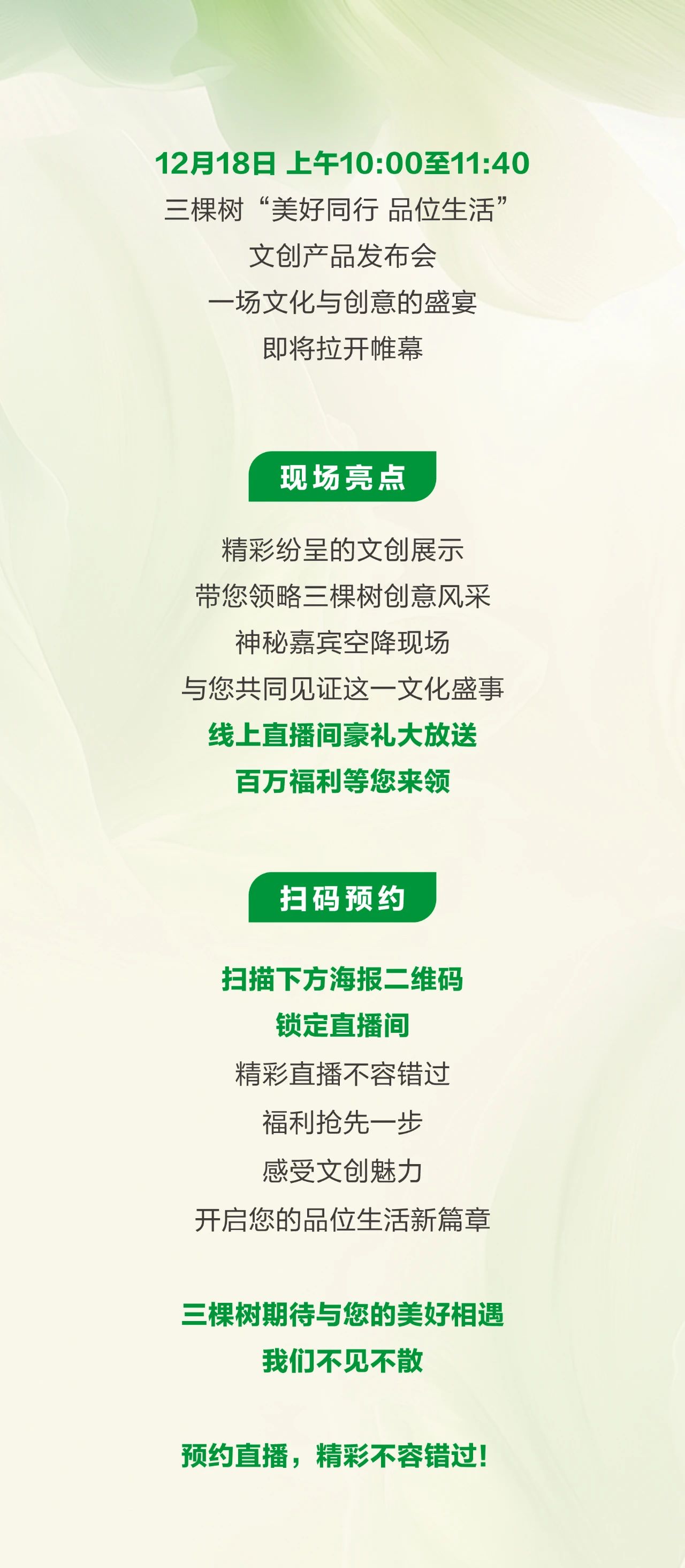 12月18日上午10:00至11:40,三棵樹“美好同行 品位生活”文創產品發布會
